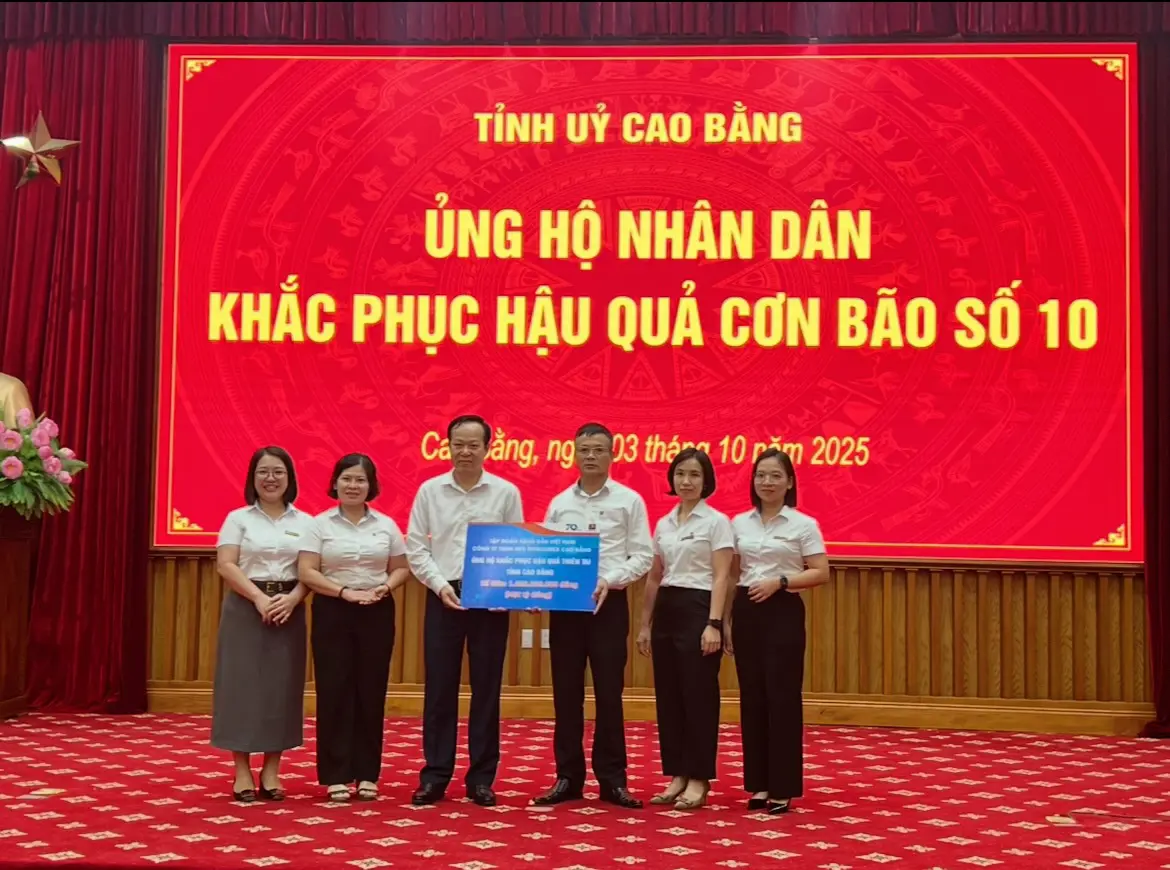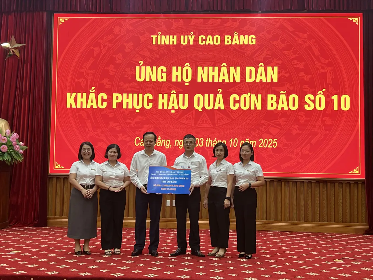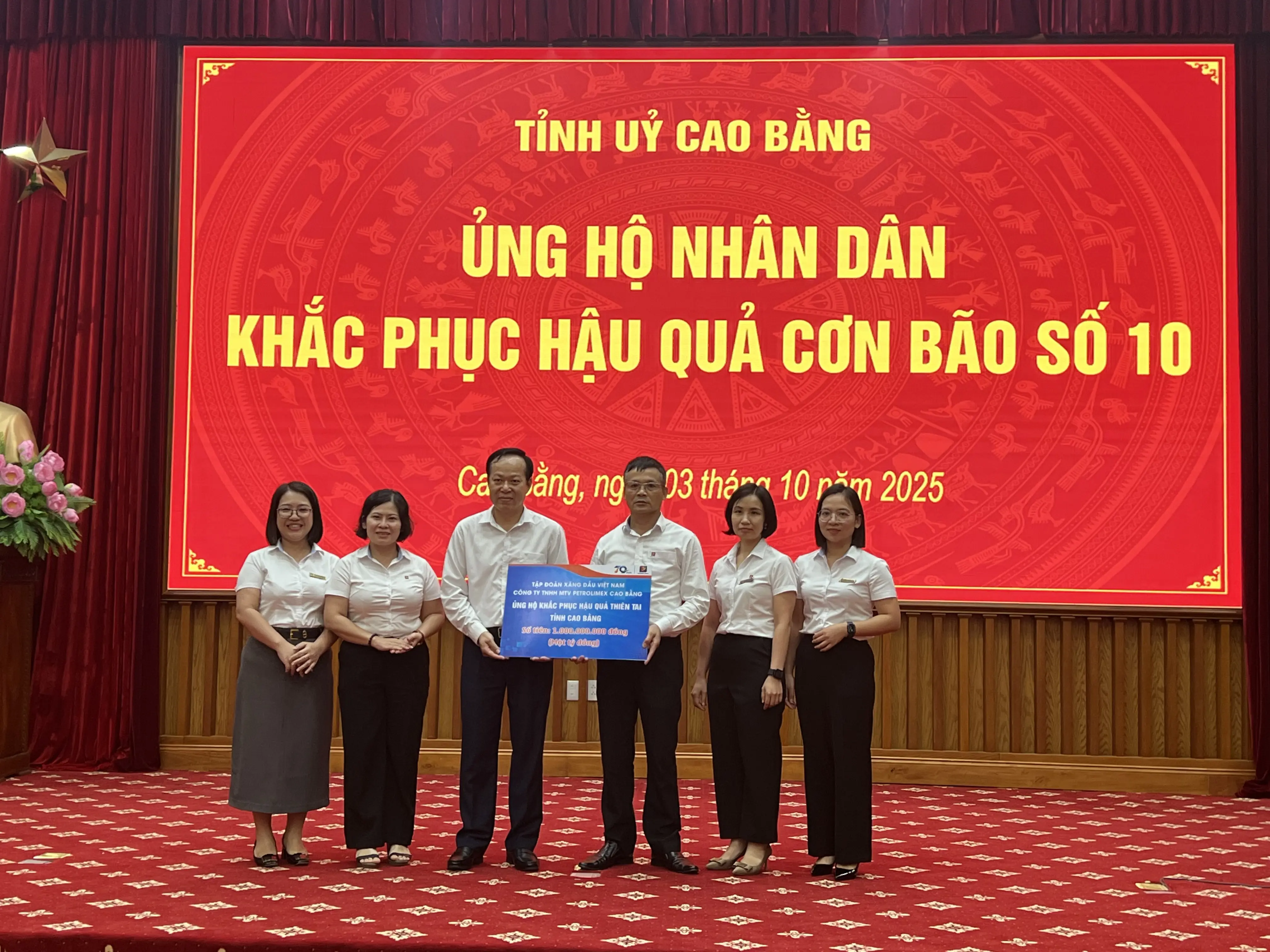 Thực hiện chỉ đạo của Tập đoàn Xăng dầu Việt Nam (Petrolimex) trong chương trình ủng hộ các địa phương chịu ảnh hưởng nặng nề bởi bão số 10 – Bualoi. Chiều ngày 03/10/2025, Công ty TNHH MTV Petrolimex Cao Bằng (Petrolimex Cao Bằng) thừa ủy quyền của Tập đoàn Xăng dầu Việt Nam đã phối hợp với Ủy ban Mặt trận Tổ quốc Việt Nam tỉnh Cao Bằng trao tặng số tiền 1 tỷ đồng để hỗ trợ nhân dân trên địa bàn tỉnh khắc phục hậu quả thiên tai.