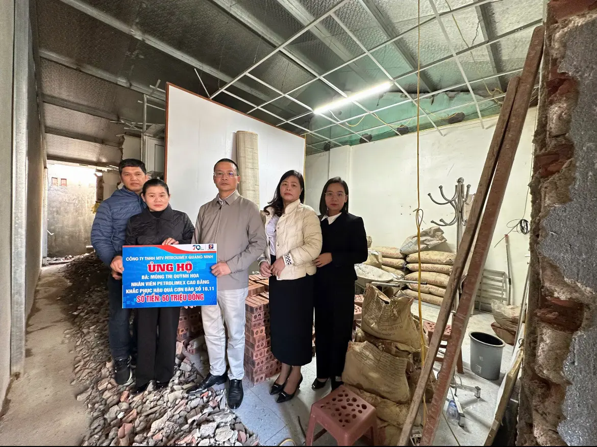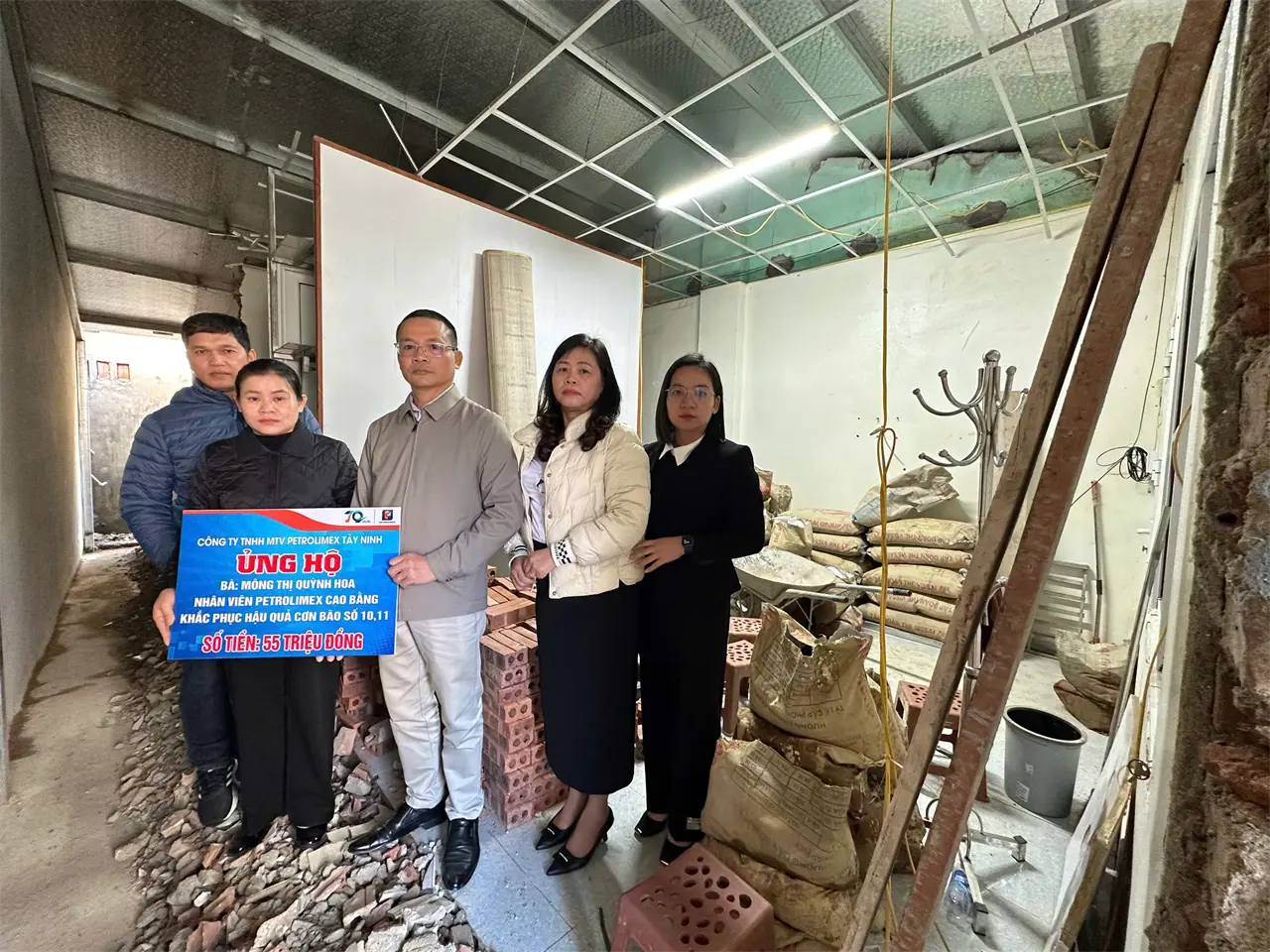 Ngày 20/11, Công ty TNHH MTV Petrolimex Cao Bằng đã tổ chức trao số tiền hỗ trợ cho gia đình bà Mông Thị Quỳnh Hoa – Công nhân Cửa hàng VTTH trực thuộc Công ty. Gia đình bà Hoa là một trong những hộ bị ảnh hưởng nặng nề bởi cơn bão số 10 và 11, khiến đời sống và kinh tế gặp nhiều khó khăn.