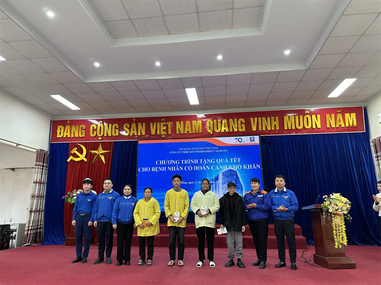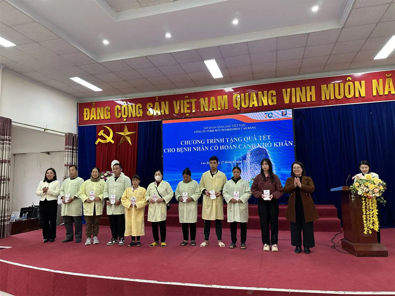 Hướng tới mục tiêu gắn hoạt động sản xuất kinh doanh với công tác an sinh xã hội, chiều ngày 27/01/2026, Công ty TNHH MTV Petrolimex Cao Bằng đã phối hợp với Bệnh viện Đa khoa tỉnh Cao Bằng tổ chức chương trình trao quà cho các bệnh nhân có hoàn cảnh khó khăn đang điều trị tại bệnh viện.