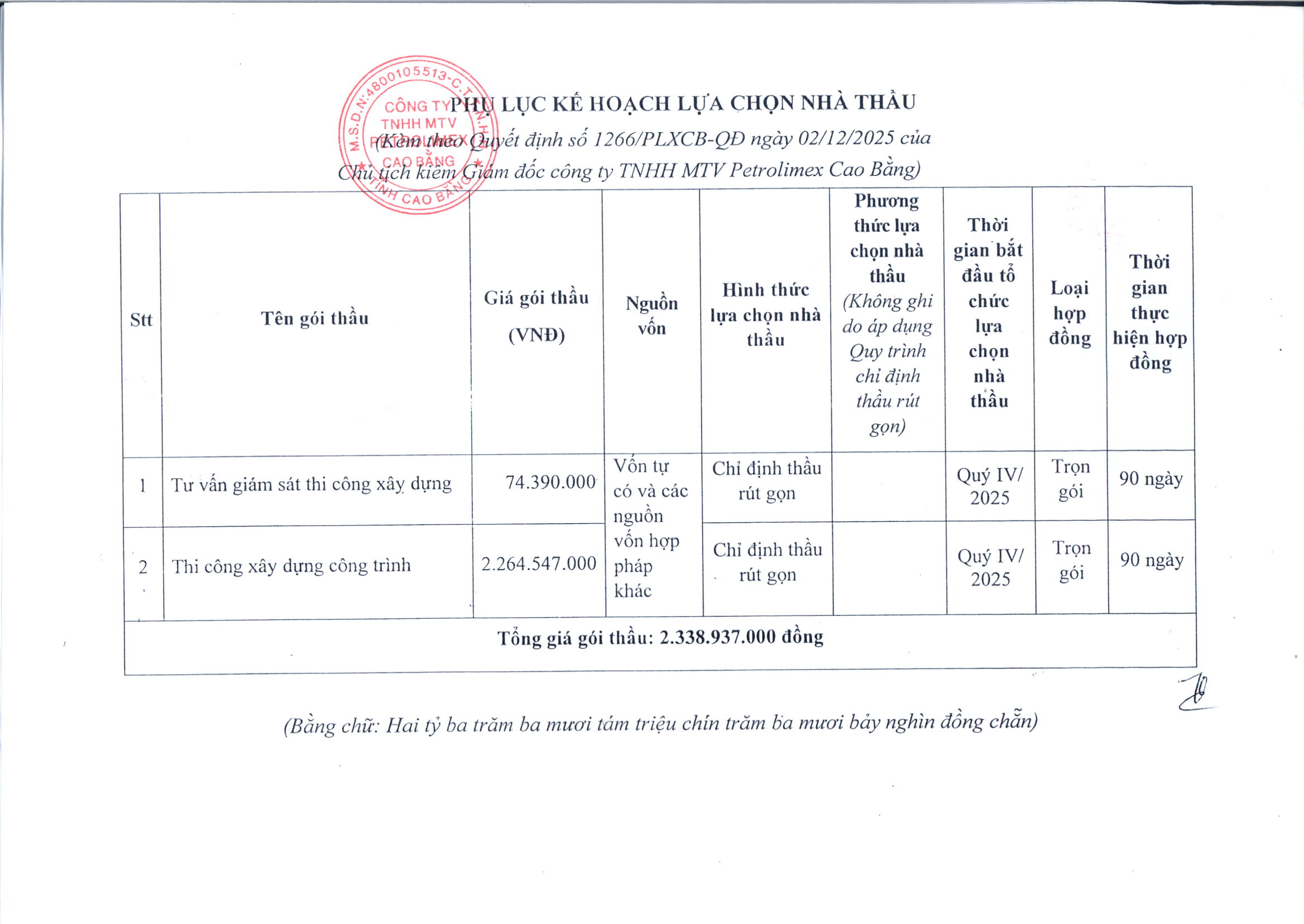 CÔNG TY TNHH MTV PETROLIMEX CAO BẰNG