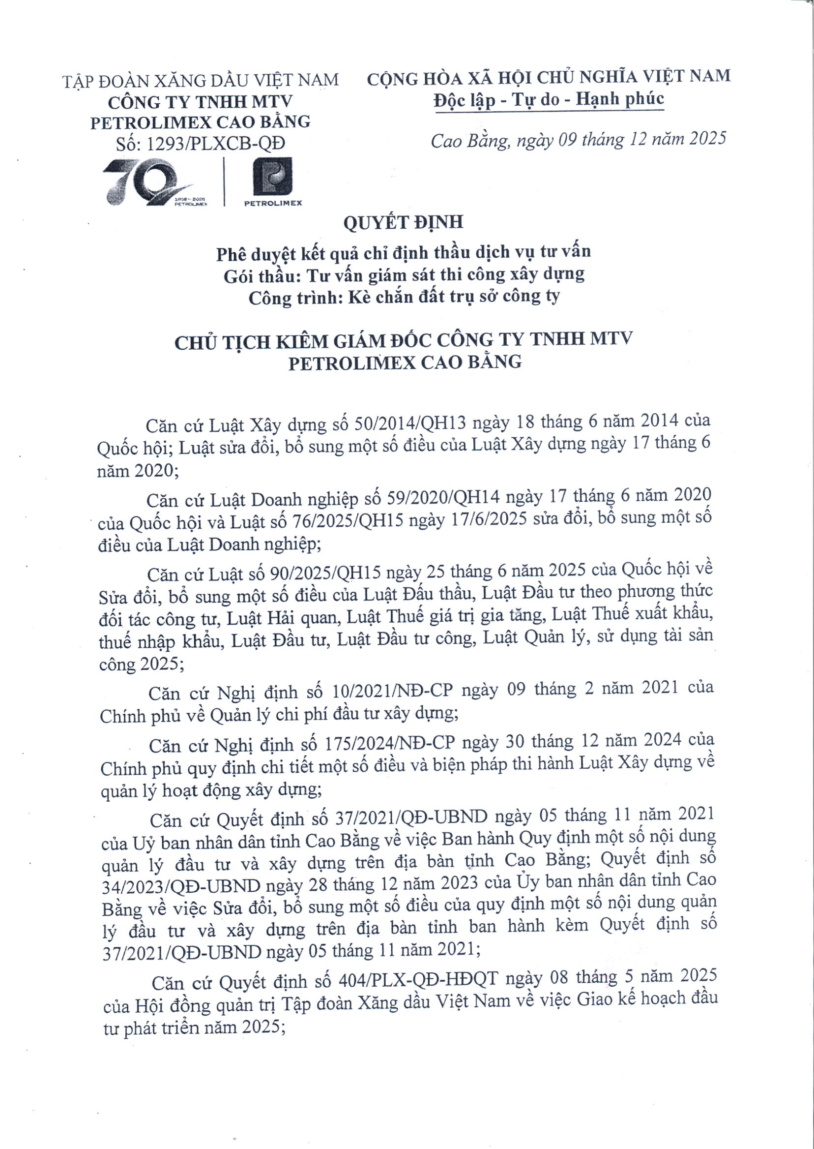 Nguồn: Petrolimex Cao BằngPetrolimex Cao Bằng