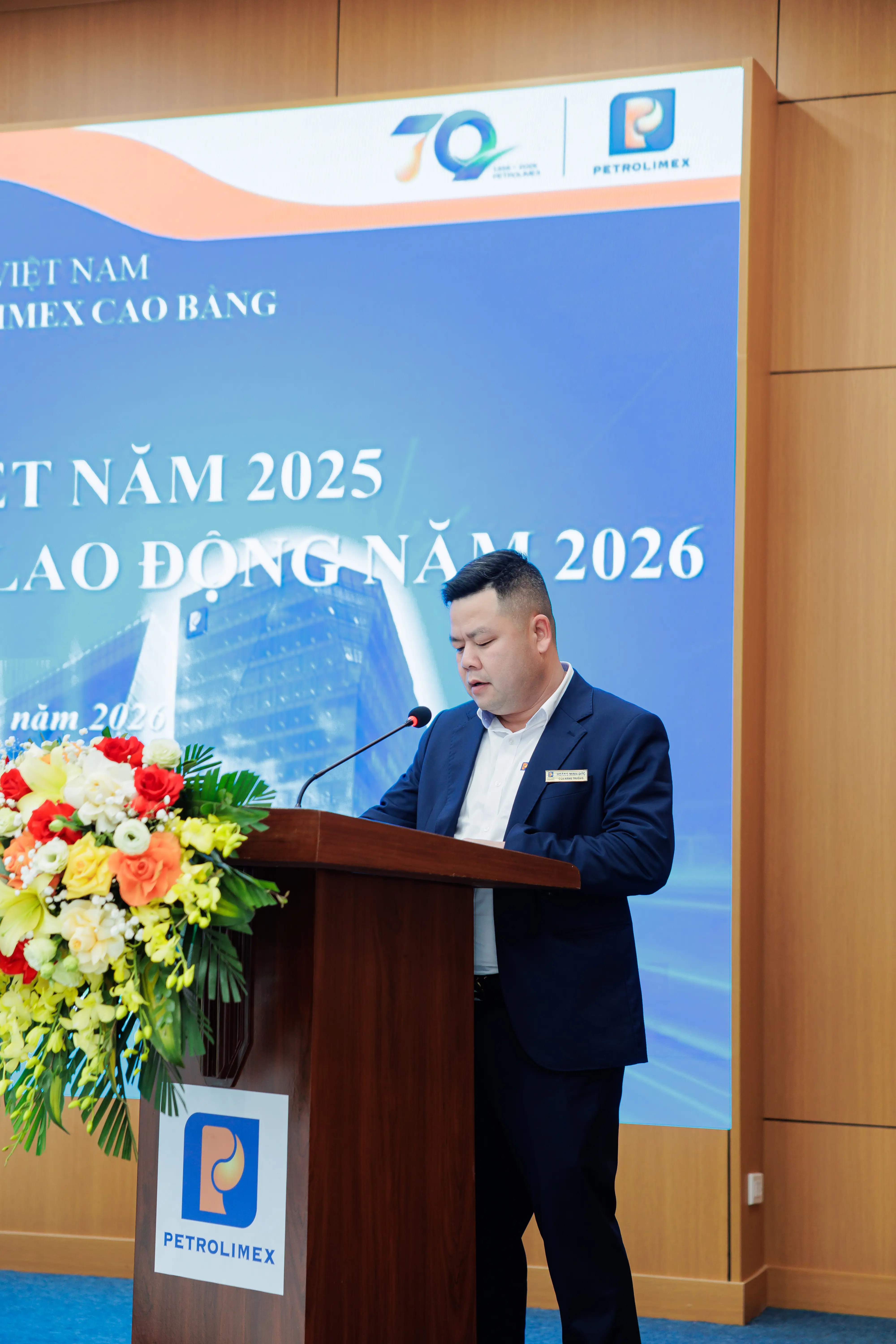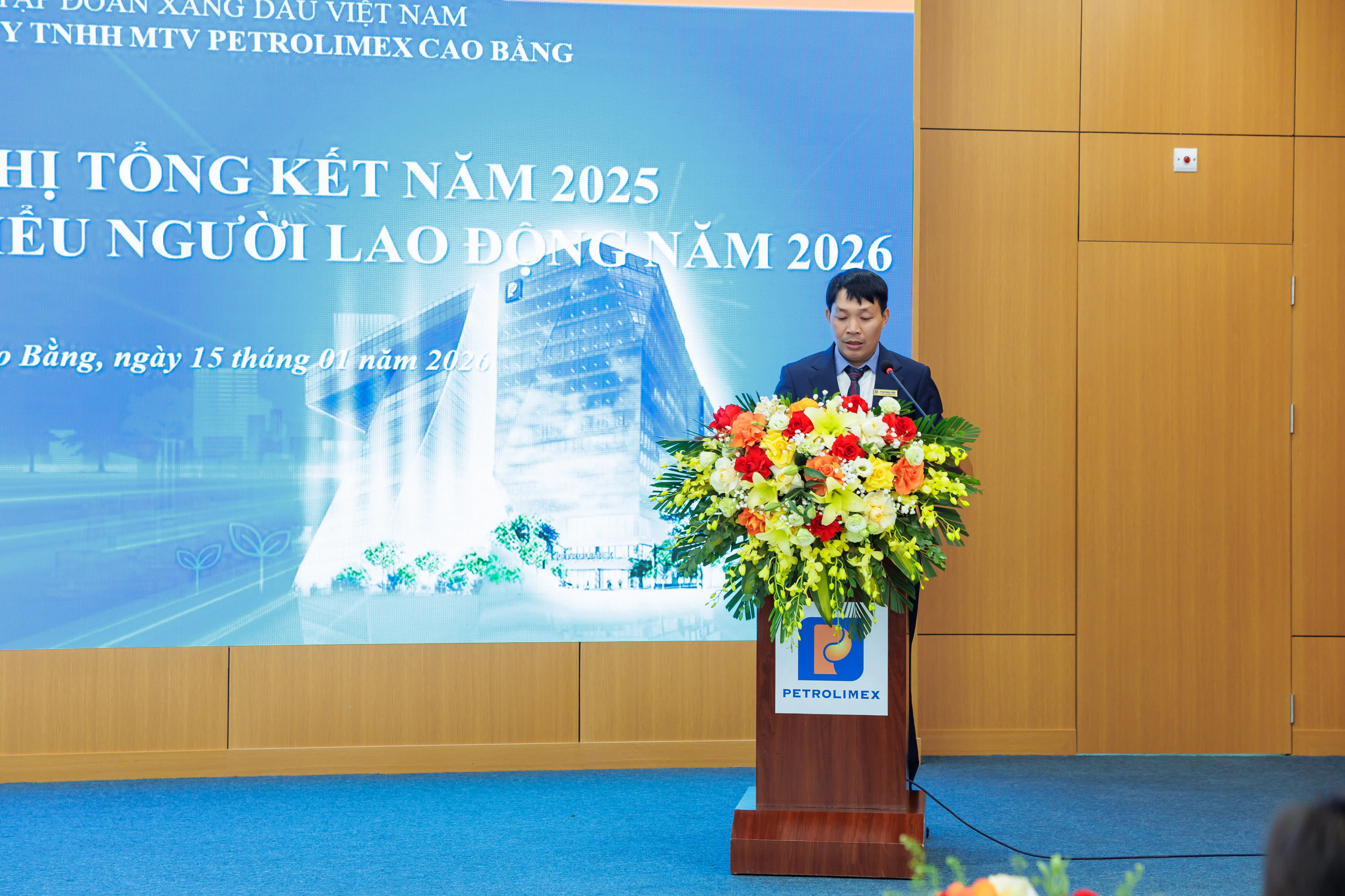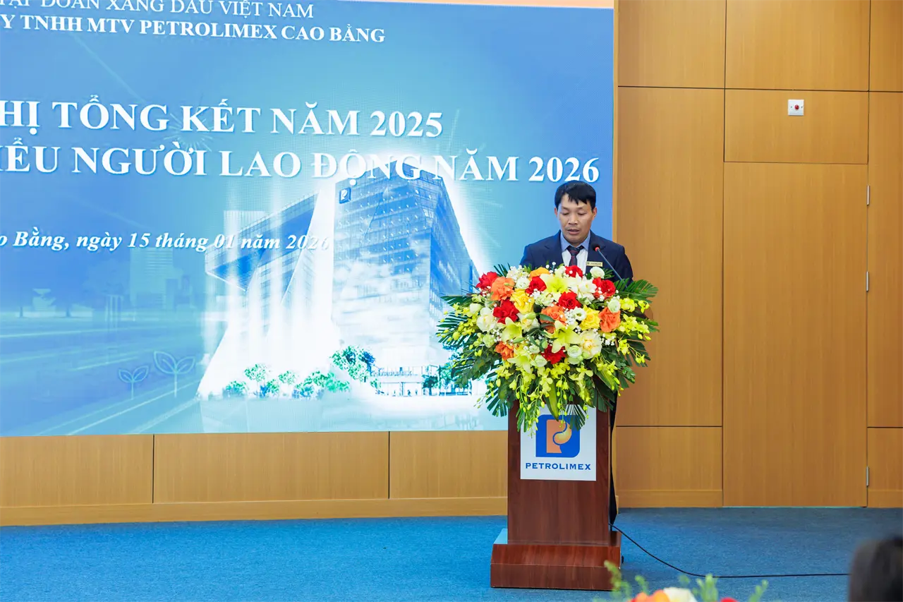 Trong không khí phấn khởi thi đua chào mừng các ngày lễ lớn của đất nước và chào mừng kỷ niệm 70 năm Ngày thành lập Tập đoàn Xăng dầu Việt Nam (12/01/1956 – 12/01/2026), ngày 15/01/2026 tại trụ sở Văn phòng Công ty, Petrolimex Cao Bằng đã long trọng tổ chức Hội nghị Tổng kết công tác năm 2025 và Hội nghị đại biểu Người lao động năm 2026.